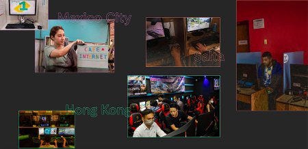 Le cybercafé fut, pour beaucoup, le lieu d'accueil des premiers voyages sur Internet. Mais aujourd'hui, partout dans le monde, face aux progrès des connexions, il perd son utilité et disparaît, plus ou moins lentement selon les pays. Plus ou moins lentement et, aussi, plus ou moins directement : nombre d'entre eux se sont adaptés, ont évolué. Ce sont ces changements que nous invite à découvrir cette série d'articles, qui nous emmène sous toutes les latitudes, en textes et photos inédites et inspirantes.