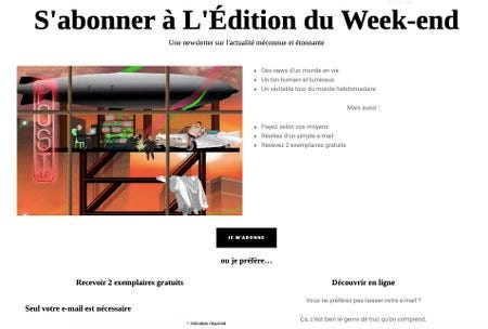 Ça, vous connaissez. Rien ne change dans la newsletter elle-même, mais j'ai entendu les appels : il sera désormais possible de s'abonner sans passer par Patreon, en payant en ligne directement sur le site, le tout sécurisé par Stripe. Il sera aussi possible de recevoir deux exemplaires gratuits, ou même de les découvrir directement sur le site, pour les curieuses et curieux qui préfèrent ne pas laisser leur e-mail avant d’avoir vu le produit. La sécurité, et la confidentialité : on aime.