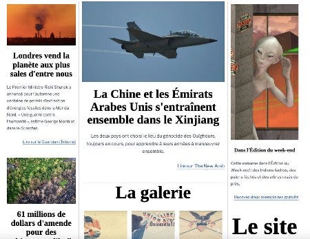 Le Fil est la réponse à cette énigme : comment conserver la vie du site, sans m’engager pour une quantité impossible de travail, tout en promouvant ce qui me tient à cœur : la diversité des sources, et la vitalité du monde ? Cette nouvelle rubrique, en accès gratuit, sera mise à jour une fois par semaine (je fais encore des essais, mais ce sera sans doute le mardi), et présentera les news qui n’ont pas trouvé leur place dans L'Édition du Week-end —à laquelle je réserve, bien entendu, à la fois les infos que je juge les plus pertinentes pour suivre l’évolution du globe, mais aussi les traitements les plus approfondis.