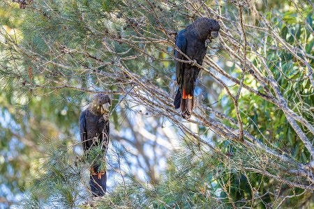 Le cacatoès funèbre d'Australie —plus sympathiquement appelé, en anglais, "cacatoès lustré" (glossy)— est l'une des espèces animales les plus en danger d'extinction. Mais ses admirateurs, et les zoologistes, célèbrent aujourd'hui un espoir renouvelé pour sa préservation : la découverte de trois nids, pour la première fois en vingt ans, dans la province de Nouvelles Galles du Sud. Une région régulièrement dévastée par les incendies, toujours plus graves et nombreux, au point d'avoir fait partir en fumée la moitié de l'habitat naturel de l'oiseau au plumage plus noir que la nuit. Ce qui, étrangement, a aussi facilité l’heureuse trouvaille.