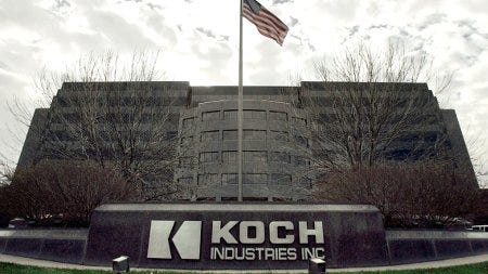 Reprenons, donc. Koch Industries Incorporated est une multinationale basée au Kansas. Elle affiche 125 milliards de dollars de chiffre d'affaires en 2021. C'est la deuxième entreprise la plus riche des États-Unis, après le géant de l'alimentation Cargill. Le cœur de son business, c'est le raffinage de pétrole.