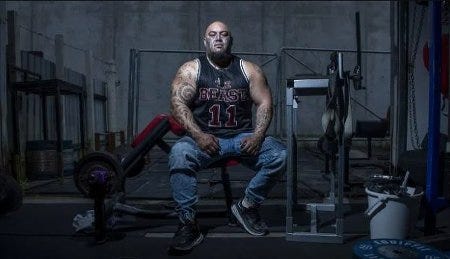 "Quand Heta-Morris s'est lancé, en 2011, il a rapidement remporté une compétition à Hamilton. Puis il a fini troisième, derrière van der Westhuizen, le dernier homme du pays à l'avoir battu : la Bête a depuis toujours fini champion national, sans discontinuer.