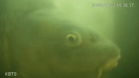 La sonnette pour poissons se trouve donc à cette adresse et, quand le spectateur bien humain du flux vidéo constate que trop de poissons se sont accumulés pour leur propre bien, il lui suffit d'appuyer sur un gros bouton juste à côté du lecteur (la sonnette). Alors s'ouvrent l'écluse et le passage. Enfin presque : le signal est d'abord relayé à des professionnels, qui s'assurent que suffisamment d'animaux vertébrés à branchies —vous voyez, même les périphrases, pour éviter de répéter poisson, ce n'est pas très heureux— sont présents, afin de tempérer les ardeurs des plaisantins et obsessionnels.