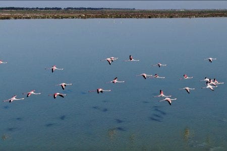 Sa cible, cette fois, est un vieillard indolent, splendide et vulnérable. C'est le delta du fleuve Vjosë en Albanie, qui s'étend en un merveilleux lagon, dit de Nartë. Vous en avez peut-être déjà entendu parler : c'est l'une des dernières zones européennes primaires, c'est-à-dire quasiment intouchées par l'homme en plusieurs millénaires, à l'exclusion de quelques constructions modestes et peu peuplées. Avec ses 40 kilomètres carrés, c'est un environnement privilégié pour la conservation et, osons-le mot, l'épanouissement, de très nombreuses espèces animales. Le pélican de Dalmatie, le flamant rose, la spatule (après plusieurs minutes à maudire les limitations des traductions en ligne, il m'a bien fallu reconnaître mon ignorance et comprendre que la spatule est d'abord un oiseau), pour n'en citer que quelques unes. "Un des sites de préservation de la biodiversité les plus vitaux, non seulement pour l'Albanie mais aussi pour toute l'Europe", s'alarme Aleksandër Trajçe, directeur exécutif de l'ONG Protection et Préservation des Environnements Naturels en Albanie.