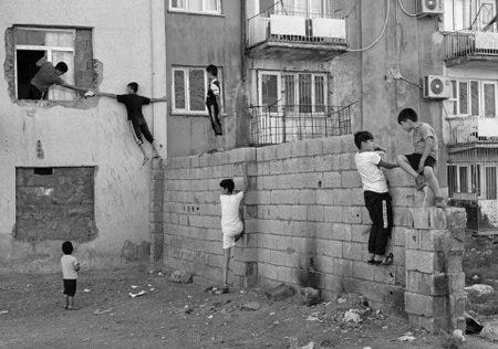 En contemplant les quelques clichés d'Özmen reproduits dans l'article, il est frappant de constater qu'en effet, il n'y a pas que la mise en place du régime d'Erdogan qui a plombé le pays au fil de la décennie passée. Il y a eu la destruction programmée de la ville historique de Hasankeyf, ses monuments vieux de 12 000 ans engloutis par les eaux suite à la construction d'un barrage, il y a eu les attentats (au moins 100 morts et 500 blessés dans celui de 2015 à Ankara, attribué à Daesh), il y a eu la guerre menée contre les Kurdes, parfois très littéralement, il y a eu la tentative de coup d'État de 2016, il y a eu le tremblement de terre de février 2023,… Il y a eu, enfin, l'éclatement de la guerre en Syrie : un conflit qui jettera sur les routes de l'exil des millions de réfugiés. À elle seule, la Turquie en accueille toujours 3,6 millions.