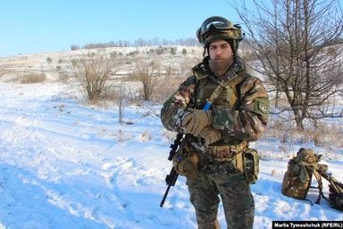 Pour RadioFreeEurope, Fima, 57 ans, électricien dans son pays d’origine, désormais opérateur de mortier, comme Zoltan, 32 ans, autrefois cuisinier ; Bacha, 58 ans, ex-grutier, devenu tireur missile ; Dzyanis (en photo), 27 ans, depuis un an au front, commandant et formateur ; ou encore Ruslan, membre du BYPOL —une section des forces de l’ordre biélorusses entrées en résistance— témoignent de leur engagement, racontent leurs peurs et leurs défis. Tous sont condamnés à mort dans leur pays d’origine.