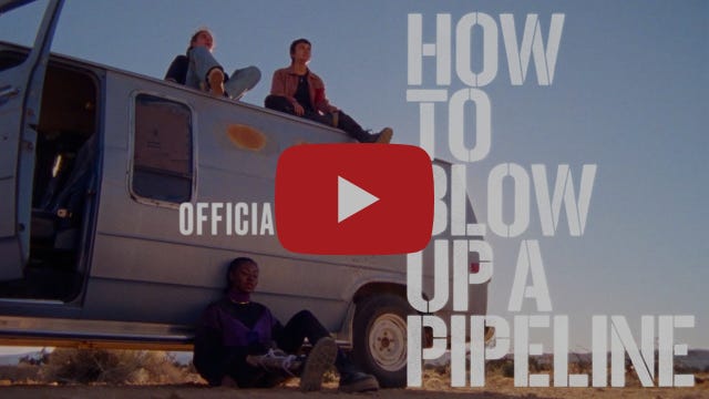 Porté sur grand écran par Daniel Goldhaber, dont c'est la deuxième réalisation après CAM, un film d'horreur psychologique sorti sur Netflix, le manifeste devient une fiction : l'histoire de huit hommes et femmes décidés à faire sauter un oléoduc au cœur du Texas. L'occasion d'explorer leurs dilemmes moraux, emballée dans un thriller. Sorti début avril aux USA, il recueille à cette heure 95 % de critiques positives selon Rotten Tomatoes. "Un des meilleurs films de l'année" pour Vice, qui a longuement interviewé son réalisateur.