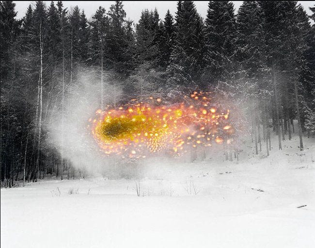 Entre tradition et modernité (donc). C'est là que se situe le musée des Beaux-Arts de Rouen, avec en simultané une exposition consacrée aux vikings et Normands, et une autre à la photographie norvégienne contemporaine. C'est celle-ci qui nous intéresse ici, pour son idée phare, tournant autour de trois artistes gentiment surréalistes. Terje Absudal (en photo), "est allé à la rencontre d'une communauté de forestiers dont les ancêtres ont émigré depuis la Finlande [et qui] perpétuent des rituels liés à la culture chamanique", nous dit Connaissance des Arts, qui voit dans ses œuvres une réinterprétation de ce "contexte magique, [livrant] des visions étranges où s'invite le surnaturel."