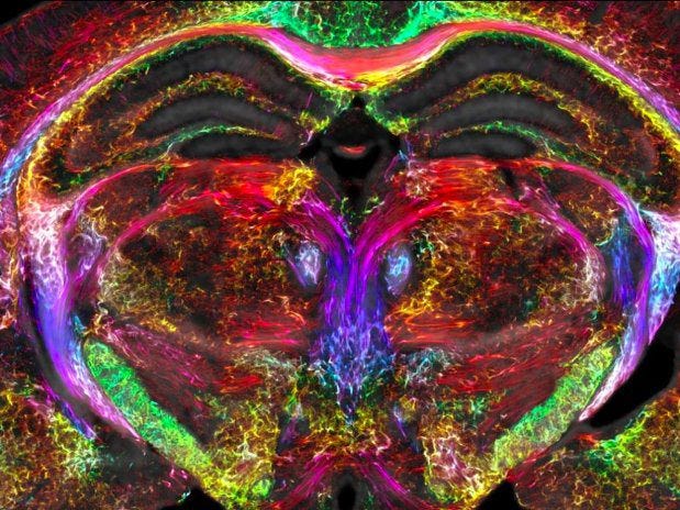 De tous temps, les hommes se sont interrogés sur l’esprit et ses mys… Non, je déconne. Oui, en l'occurrence, j'aurais pu commencer ainsi cette notule, mais les clichés, jamais deux fois de suite, sinon c’est péché. Non, soyons simplement concret : des équipes américaines de l'université de Duke en Caroline du Nord sont parvenues à mettre au point une nouvelle technique d'imagerie médicale, obtenant des scans 64 millions de fois plus nets que les IRM traditionnelles, en l'espèce du cerveau d'une souris. Le résultat, présenté par Sciences et Avenir dans une vidéo d'à peine deux minutes, est absolument fascinant. Les connexions synaptiques et leurs signaux électriques dansent, se mêlent, s'agitent à une vitesse folle, dans un spectacle qui n'est pas sans rappeler le ballet futuriste imaginé par George Lucas dans Star Wars Épisode 1.