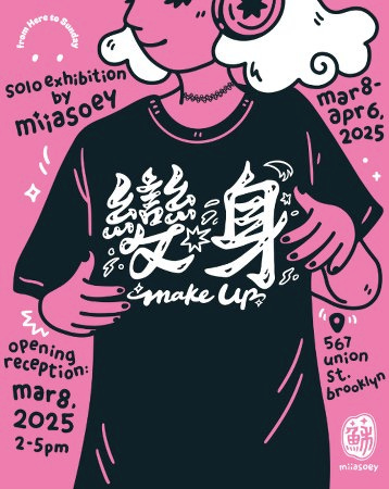 Liam Otero est allé visiter la dernière pour Whitehot, le magazine d'art contemporain. Il s'agit de Make up !, une sorte de méditation pop imaginée par Miiasoey (Helen So, de son vrai nom). L'identité, et son compagnon indispensable et paradoxal, l'évolution, sont les axes thématiques qui rassemblent "dessins à l'encre sur papier, travaux numériques imprimés, autocollants, flipbooks, aquarelles, aimants en pâte à modeler et sculptures miniatures".