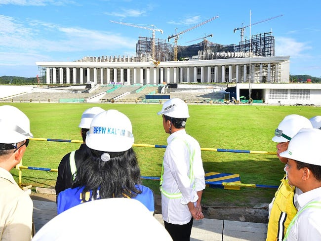 Quelque part, mais pas n'importe où : la voie rapide en chantier reliera bientôt Balikpapan à Nusantara. Balikpapan, c'est un port de 7 000 habitants. Et Nusantara ? Eh bien, Nusantara, c'est la future capitale indonésienne, au coût estimé de 32 milliards de dollars. Car oui, comme l'Égypte, l'Indonésie s'est lancée dans la construction d'une nouvelle capitale, sur un territoire encore vierge de l'archipel. Pourquoi Jakarta doit-elle déménager ? Parce que, entre le pompage massif des nappes phréatiques, l'imperméabilisation des sols et le poids des gratte-ciels (l'aire urbaine compte tout de même trente millions d'habitants), la ville coule, assez littéralement, s'enfonçant dans le sol à une vitesse hallucinante (jusqu'à 25 centimètres annuellement par endroits). Selon les prévisions, la mégalopole devrait être complètement submergée d'ici à 2050.