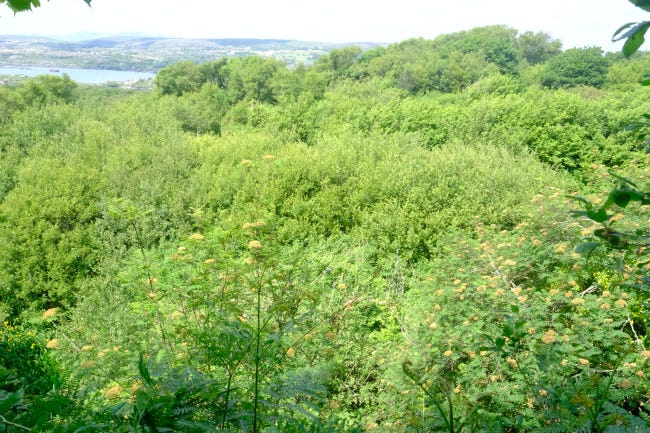 C’était en 2009. Le corps de ferme était inhabitable mais Eoghan en avait vu d’autres. Plus difficile, redoutait-il, serait de réanimer le terrain à l’abandon, ni complètement mort ni vraiment vif. Certes, ça avait poussé, depuis que la famille de cultivateurs avaient déserté la région. Pas de doutes : Beshara recense « chênes noirs, bouleaux pubescents, houx, saules, aubépines monogynes, sorbiers des oiseleurs, noisetiers, frênes, aulnes et pommiers sauvages ». Mais tout ce beau monde approchait à grande vitesse de ce que Daltun a appelé un « crash écologique », dans son livre An Irish Atlantic Rainforest (Hachette UK). Le magazine nous explique :